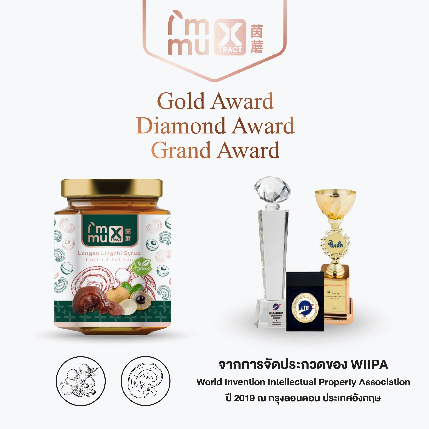 ผลงานสุดยอดนวัตกรรมนี้ ได้สกัดสารสำคัญที่สุดจากลำไยและเห็ดหลินจือซึ่งได้แก่ สารโพลีฟีนอลและโพลีแซคคาไรด์ ทำให้ได้ผลิตภัณฑ์สุดยอดพรีเมี่ยม มีสารต่อต้านอนุมูลอิสระสูง กระตุ้นภูมิคุ้มกัน ลดระดับไขมันในเลือด ออกฤทธิ์เร็ว สามารถระยับยับยั้งและลดการอักเสบเฉียบพลันของเซลล์ ซึ่งเป็นการป้องกันการอักเสบเรื้อรังซึ่งเป็นต้นเหตุของโรคทุกชนิด